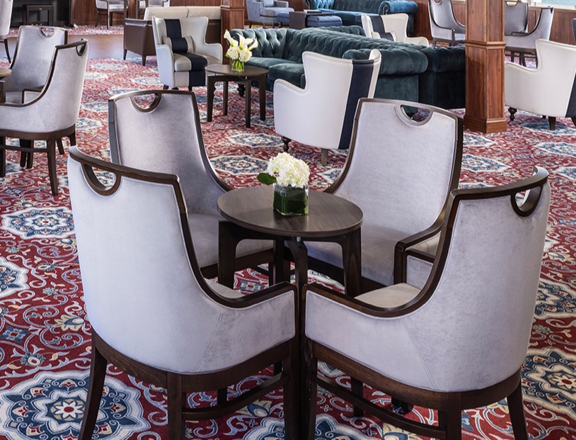 Dining Chair with exposed dark wood seat frame in Forward Lounge.
