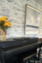 Faux Hydrangea in a glass vase. The shape of the vase will be either square or oval.