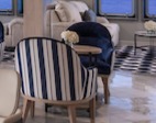Lounge Chair with Blue and White Stripes