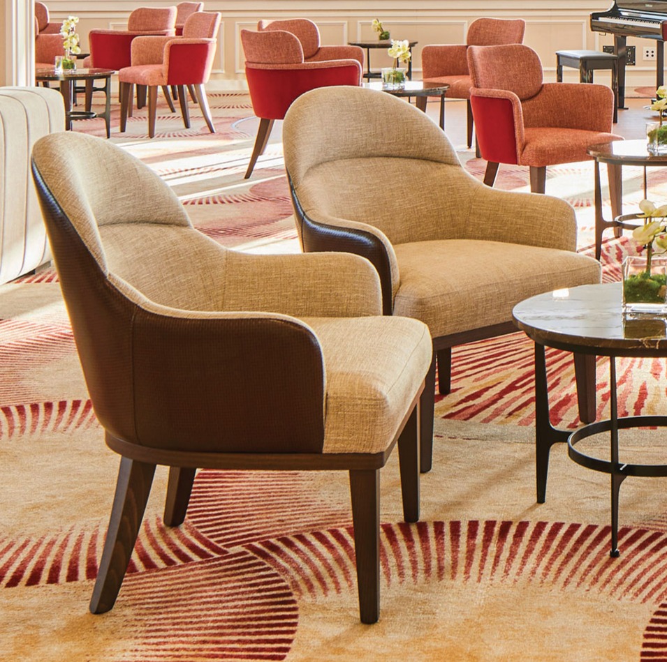 | Fabric | Swavelle Hospitality – Ordan Pebble (Inside) and Swavelle Hospitality – Skintex SF Obselisk, Color: Chocolate (Outside) |