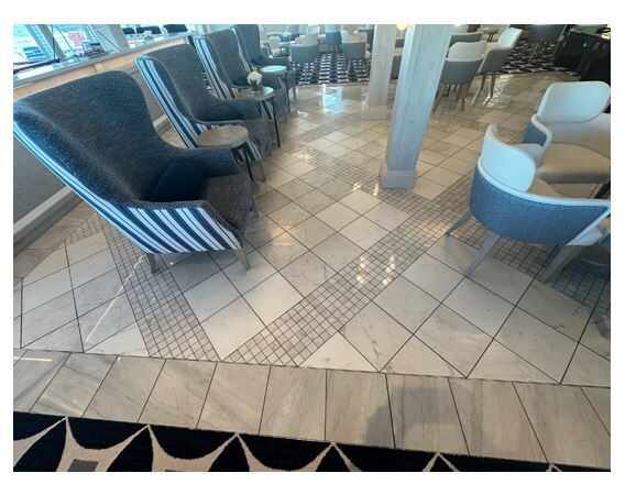 Mosaic tile in the area in front of bar in the Forward Lounge.